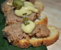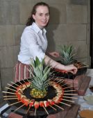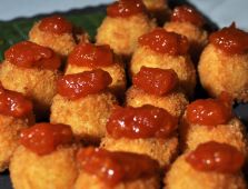 Creative hors d'oeuvres were served by Artaux Catering. There was meat-filled empanadas, chicken or shrimp with bell pepper on sticks (above right), seafood crabcakes served with a topping of cocktail sauce (below left), seafood crostini with a dallop of horseradish sauce (below right) and blue corn chips with guacamole.These delicious bites went faster than could be served.