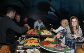 Acoustic guitarists and singers played melodious classic and contemporary tunes that echoed throughout the aquarium. The savory Hor d'oeuvres that were graciously passed around consisted of pigs in a blanket, lamb meatballs, spring rolls, and Southwest turkey.